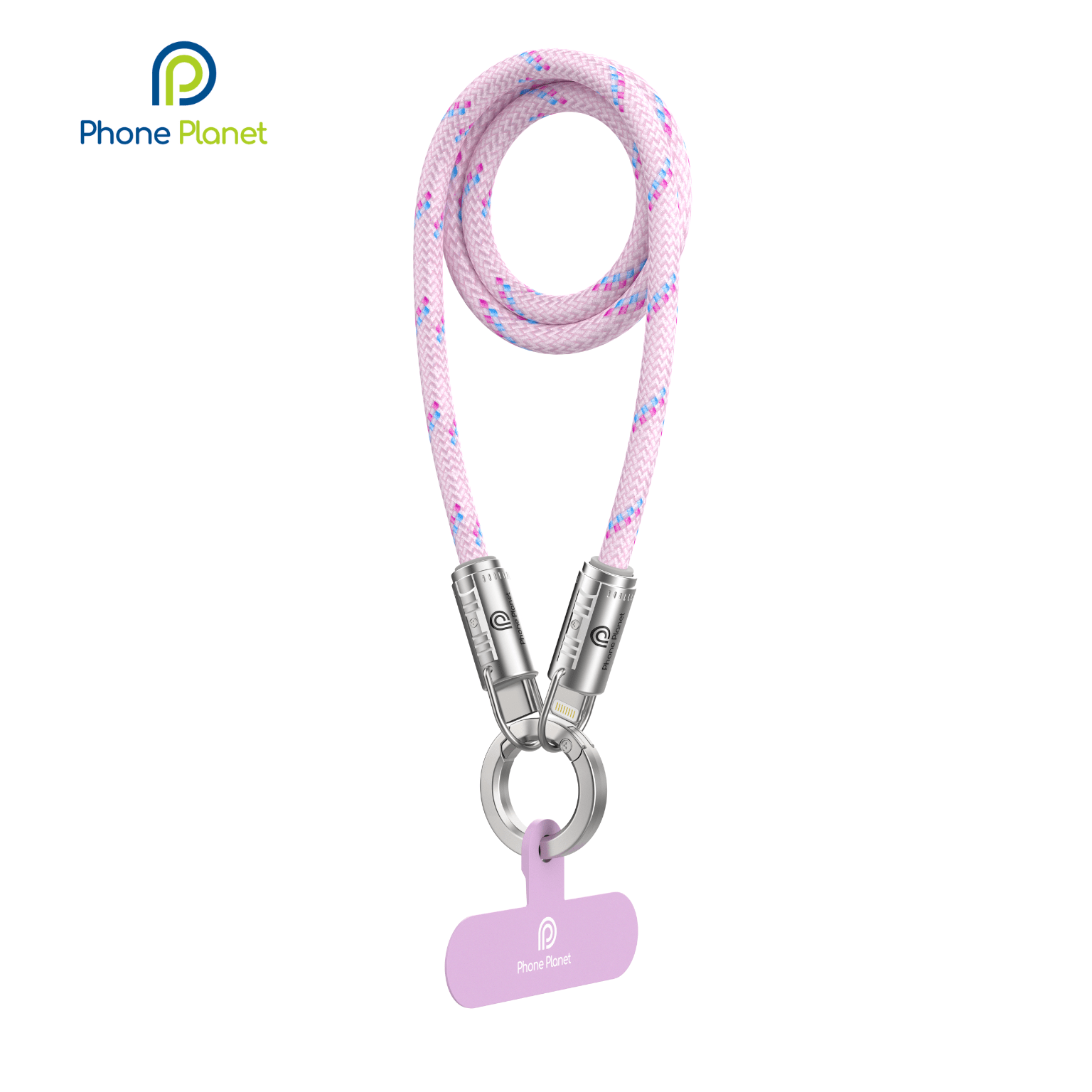 The Phone Planet PP-CL-019-120-PK Lanyard Cable is a stylish and practical 2-in-1 charging and data cable that combines PD 27W fast charging with a convenient phone lanyard design. Featuring a high-density braided cable and aluminum alloy shell, it provides hands-free use, durability, and reliable charging and data transmission for everyday use.