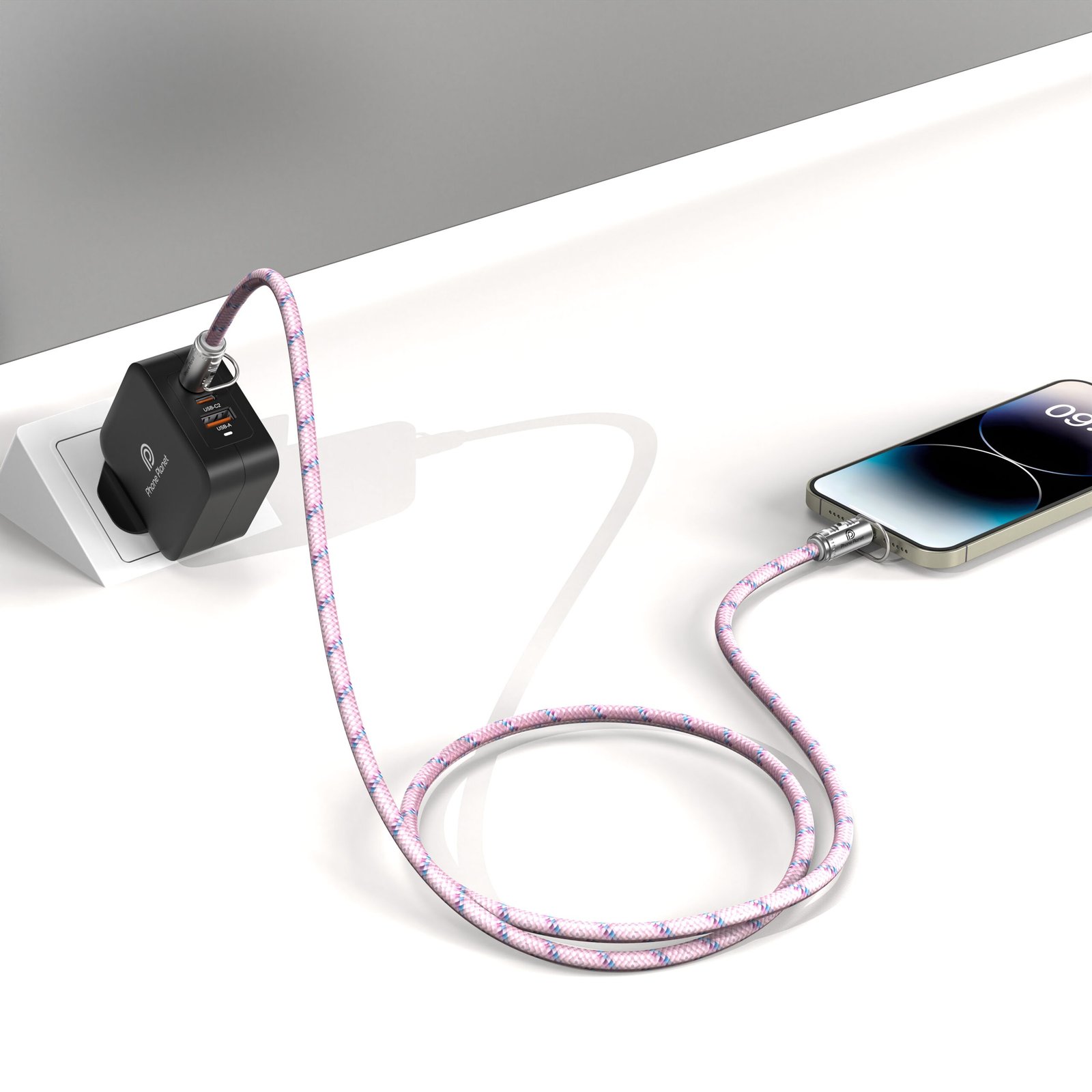 PhonePlanet PP-CL-019-120-PK 27W Type-C to Lightning Lanyard Charging Cable – PD Fast Charge, Braided Cable, 1.2m