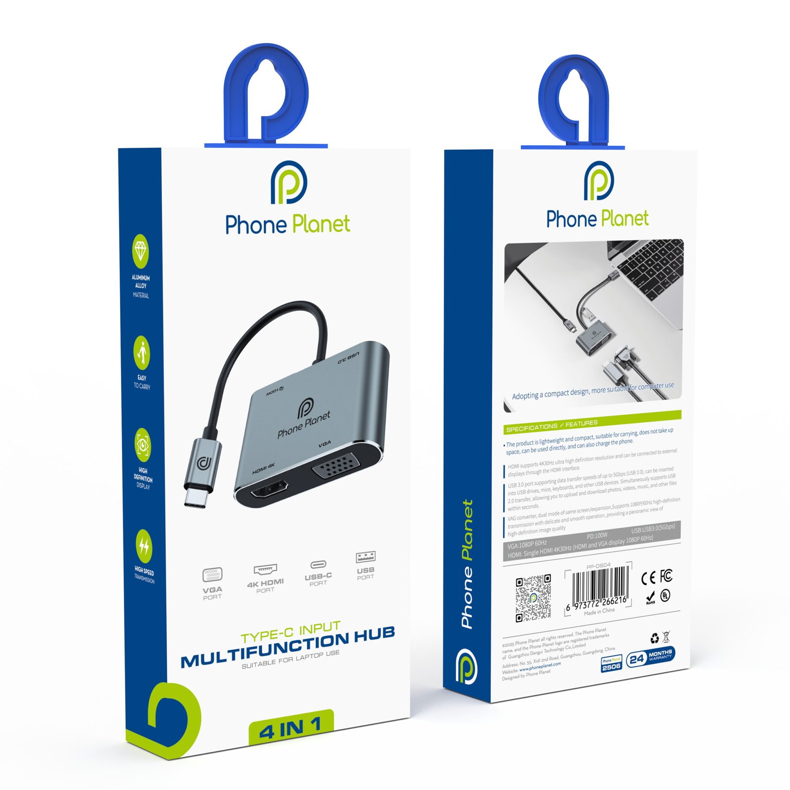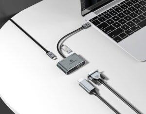 The PP-DS04 USB-C Hub offers versatile connectivity with HDMI and VGA display outputs, high-speed USB data transfer, and powerful PD fast charging. Designed for productivity and presentations, it allows seamless connection to modern and legacy displays while keeping your device powered.