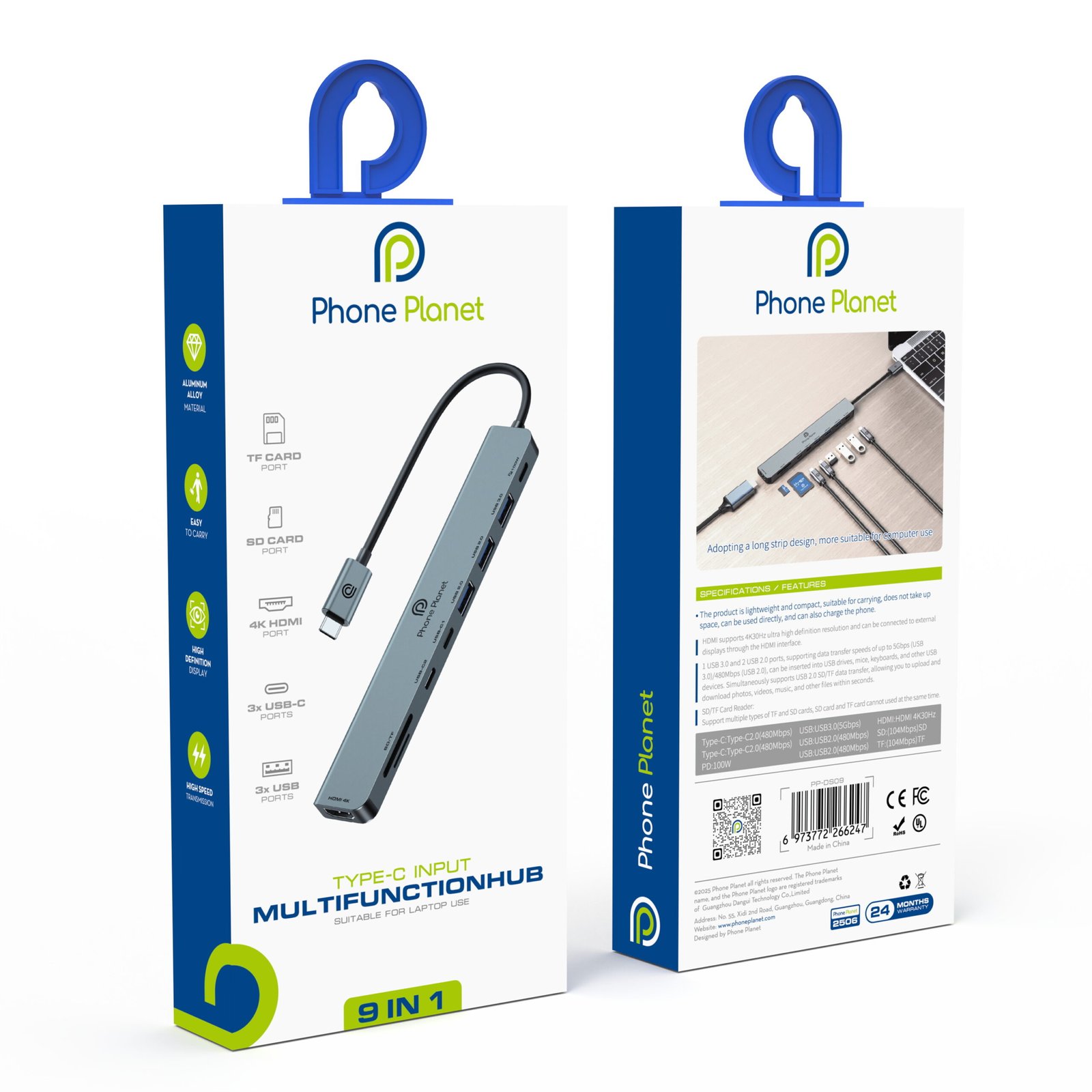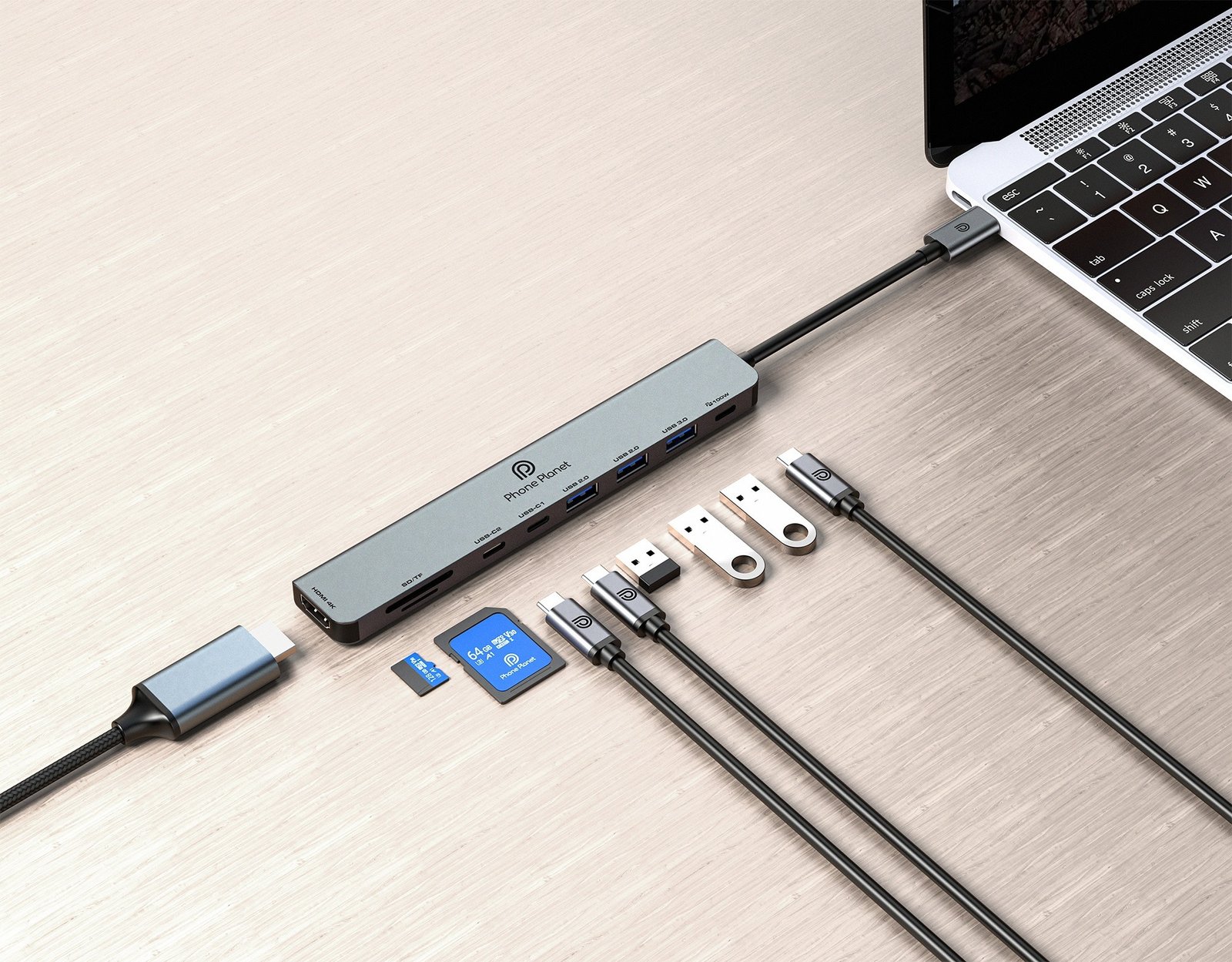 PhonePlanet -PP-DS09 – USB-C Hub 9-in-1 HDMI · SD · TF · USB · PD Expansion Hub