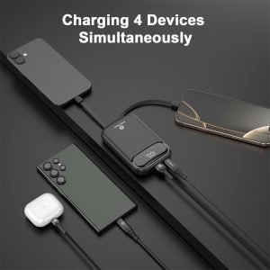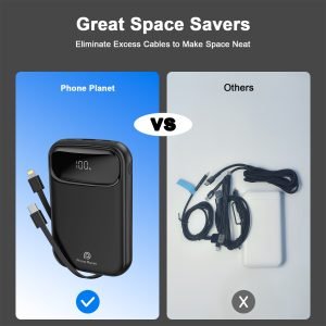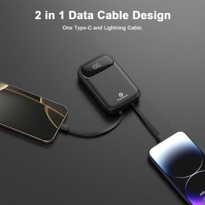 ✅ 5-Port Fast Charging – USB-C, USB-A, and built-in Lightning & Type-C cables