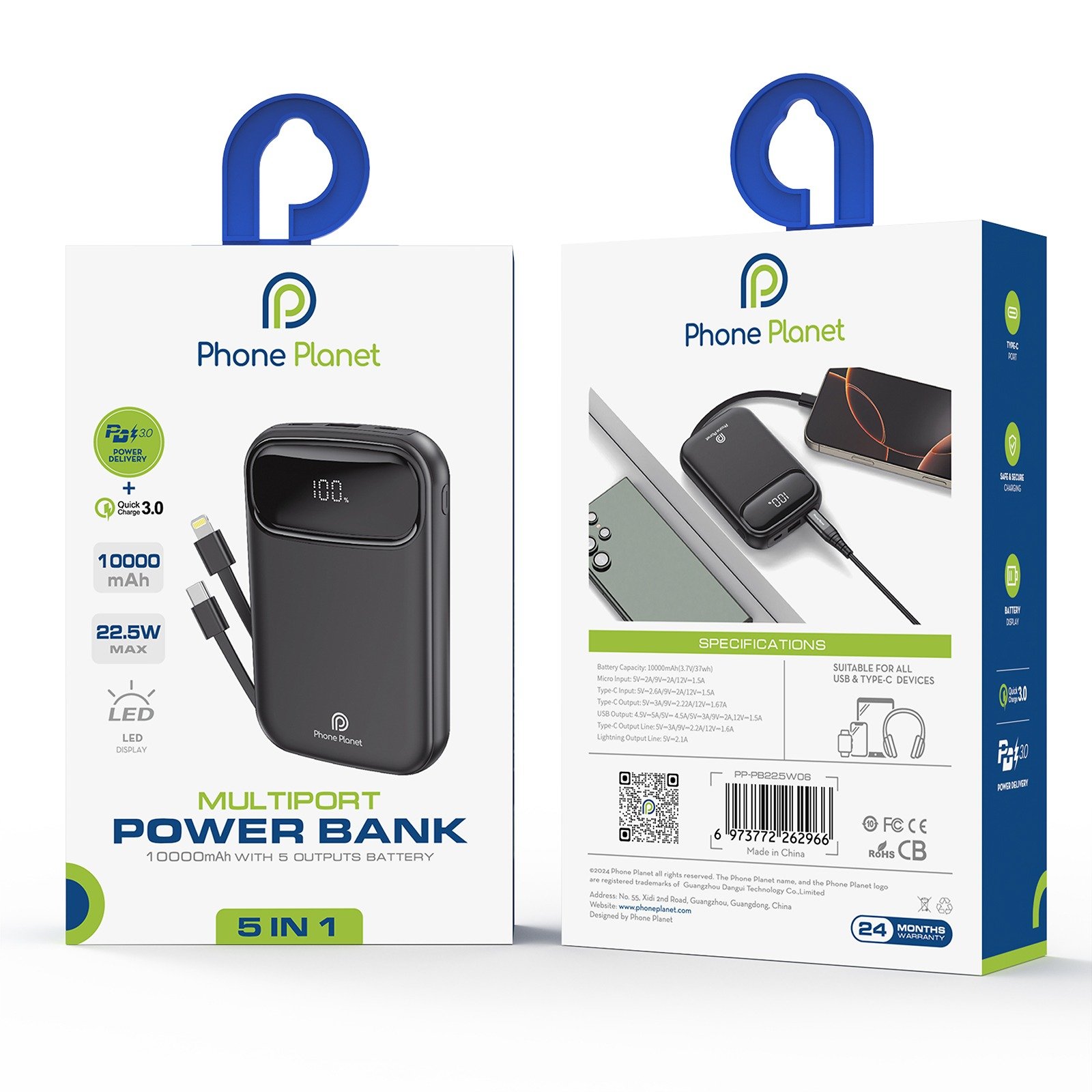 PhonePlanet- PP-PB22.5W06 10000mAh Power Bank 5-Port Fast Charging 5 IN 1