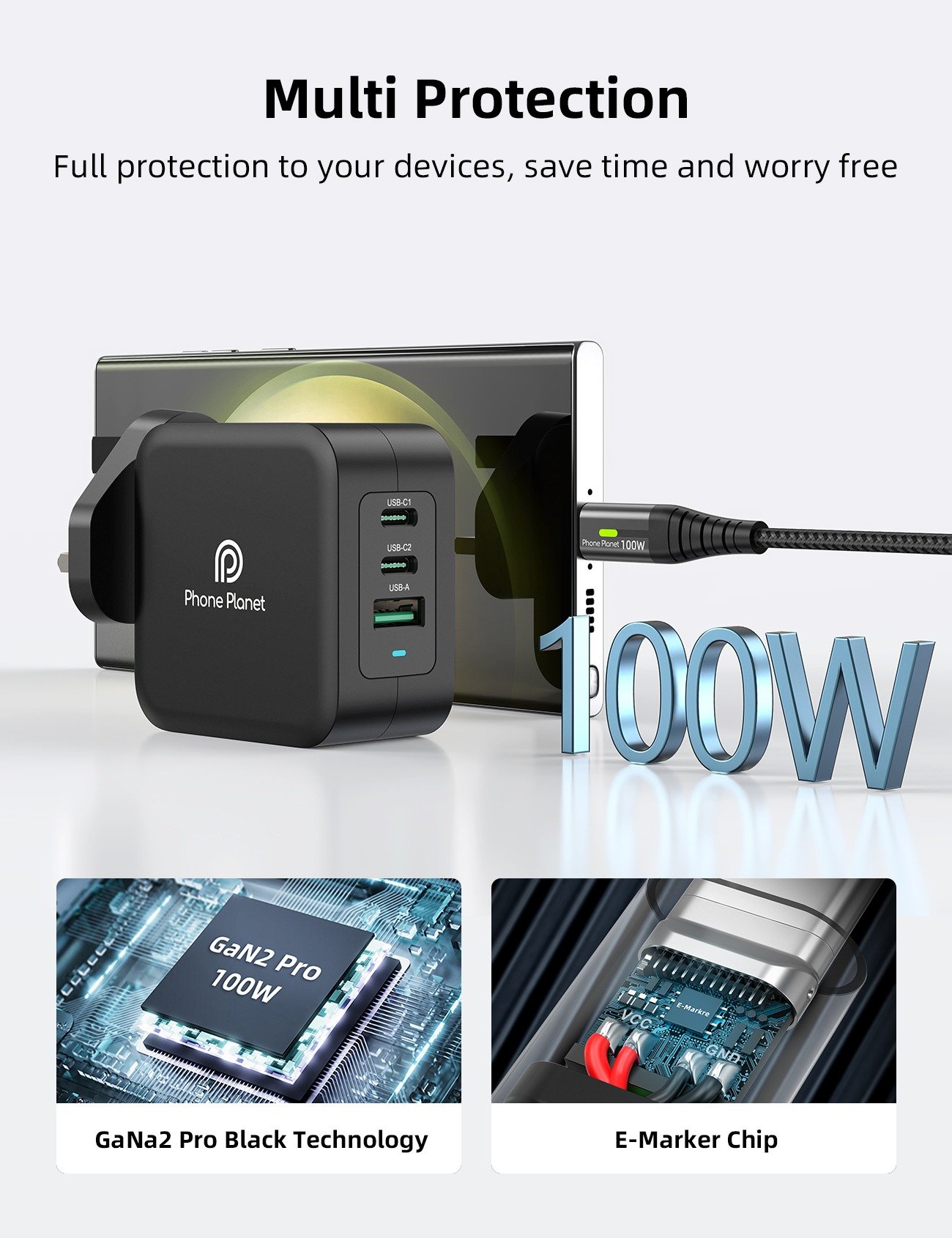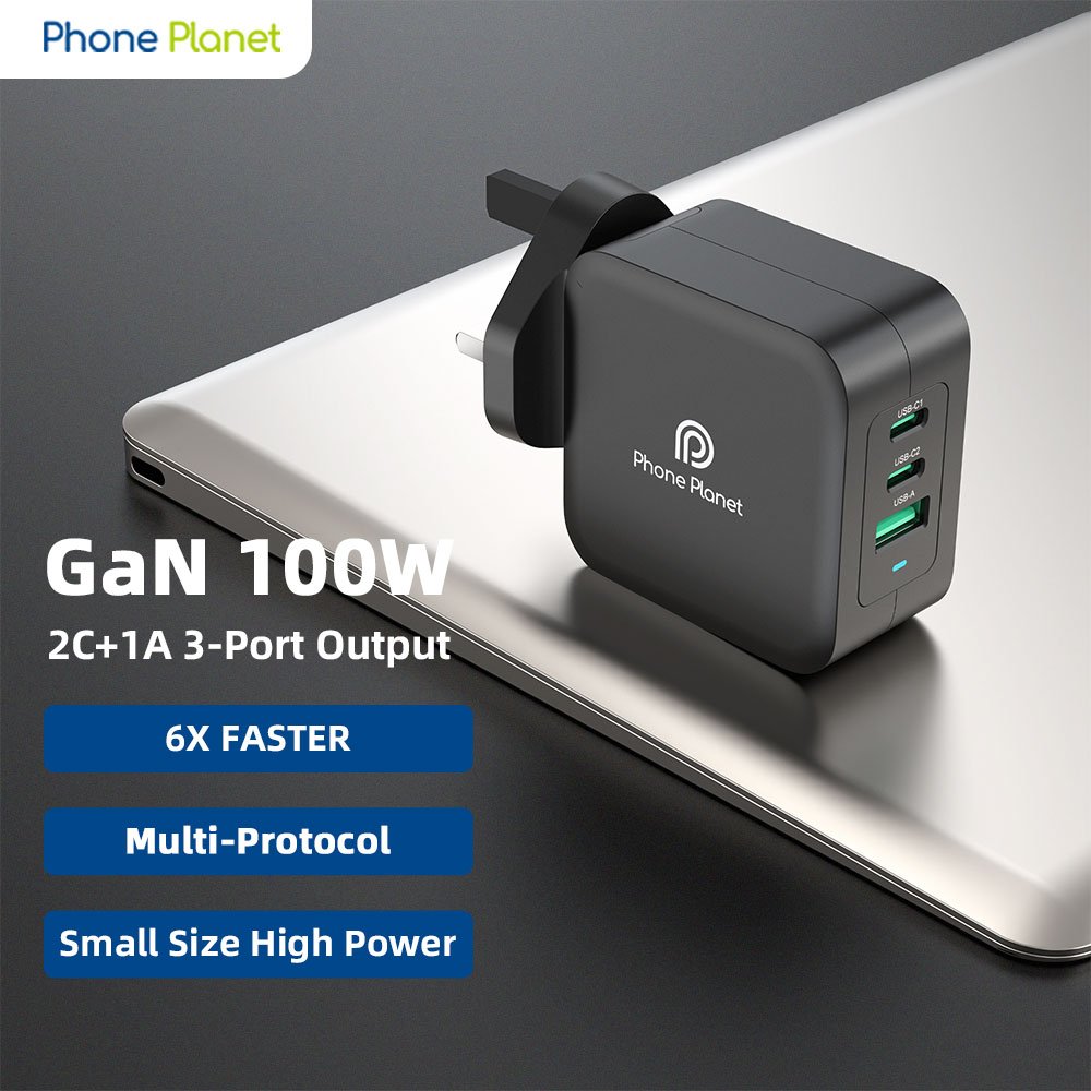PP-100W GaN-UK – 100W 2C+1A GaN Fast Charger Compact High-Speed Charging for All Devices
